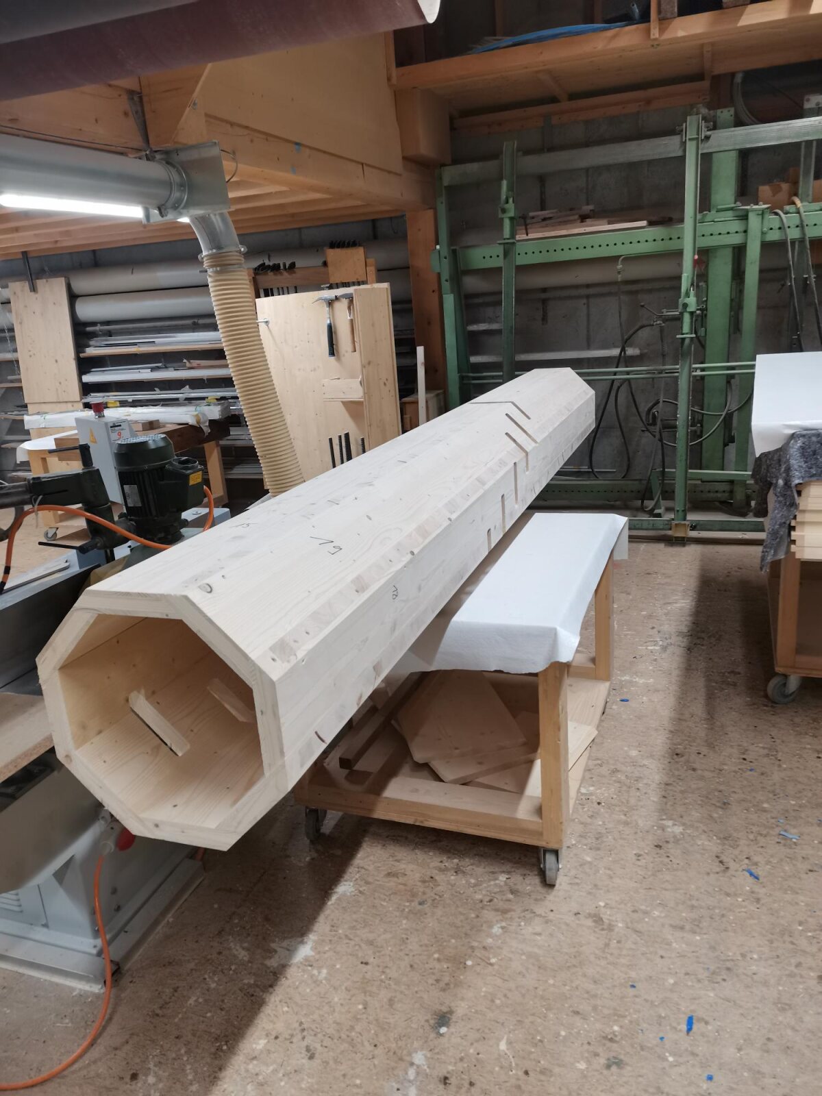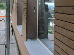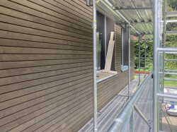 Derzeit arbeiten wir an der Holzfassade, um eine langlebige und ästhetisch ansprechende Verkleidung zu schaffen.