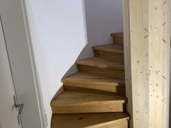 Diese Woche haben wir auf der Baustelle in Zufikon mit der Montage der Spindel-Treppe begonnen. Dabei haben wir zuerst die notwendigen Vorbereitungen getroffen, um sicherzustellen, dass alle Teile ordnungsgemäss und sicher montiert werden können. Anschliessend wurden die einzelnen Eichen-Stufen und Futterbretter sorgfältig an ihren vorgesehenen Platz gebracht und befestigt.