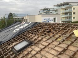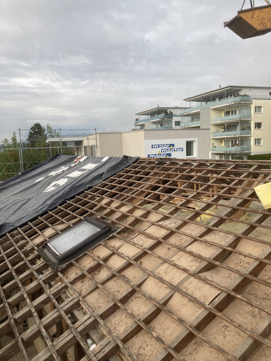 In Meisterschwanden sind wir dabei, den Dachstuhl einer Werkhalle mit integriertem Büro und Aufenthaltsraum abzubrechen. Die demontierten Baumaterialien werden dabei getrennt und fachgerecht entsorgt. Im Anschluss an den Abbruch entstehen zwei Wohnungen sowie ein neuer Büroteil.