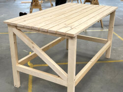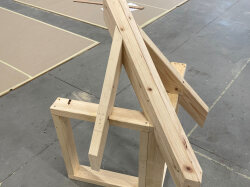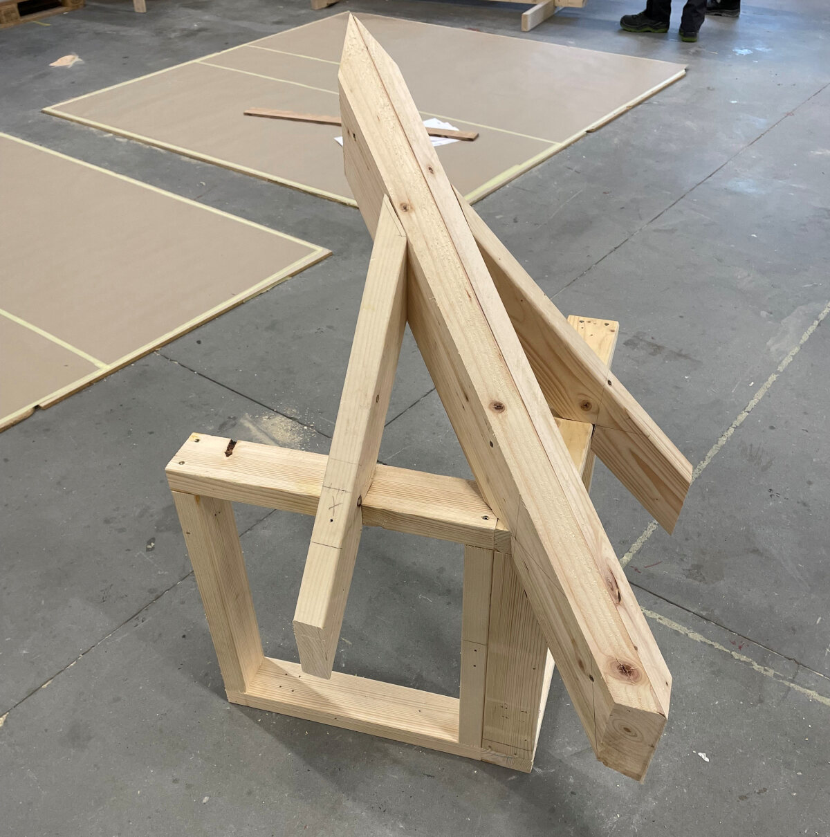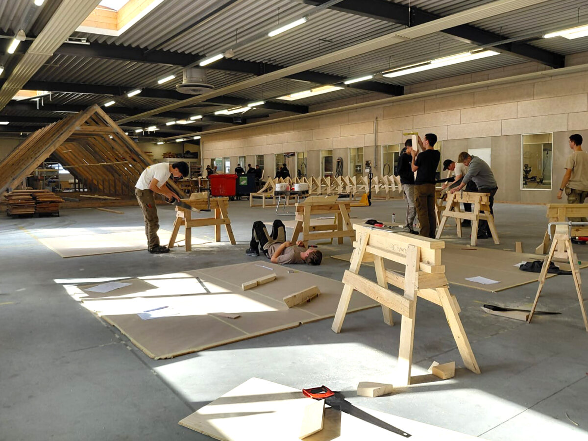 In der ersten Woche lernten wir ein 3D-Programm kennen und bauten in Gruppen einen kleinen Tisch mit verschiedenen Holzverbindungen – alles weitgehend von Hand. In der zweiten Woche fertigten wir ein Dachmodell mit Grat und Sparren. Zuerst zeichneten wir die Teile in Originalgrösse auf den Boden, anschliessend schnitten wir sie von Hand zu. Das zweite Modell gelang schon deutlich besser.