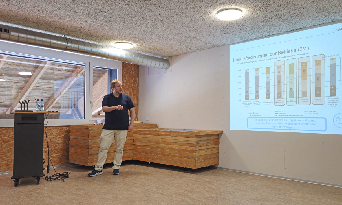 Stefan Strausak von der Schweizerischen Paritätischen Berufskommission Holzbau (SPBH) war bei uns in Schongau zu Gast und präsentierte die Resultate der Branchenbefragung – mit einem besonderen Fokus auf die Erni Holzbau AG.