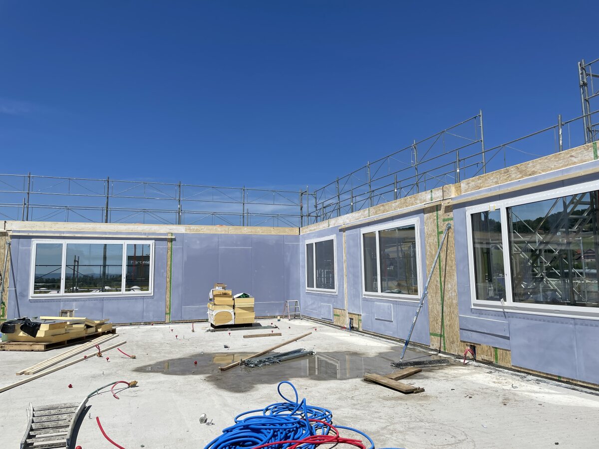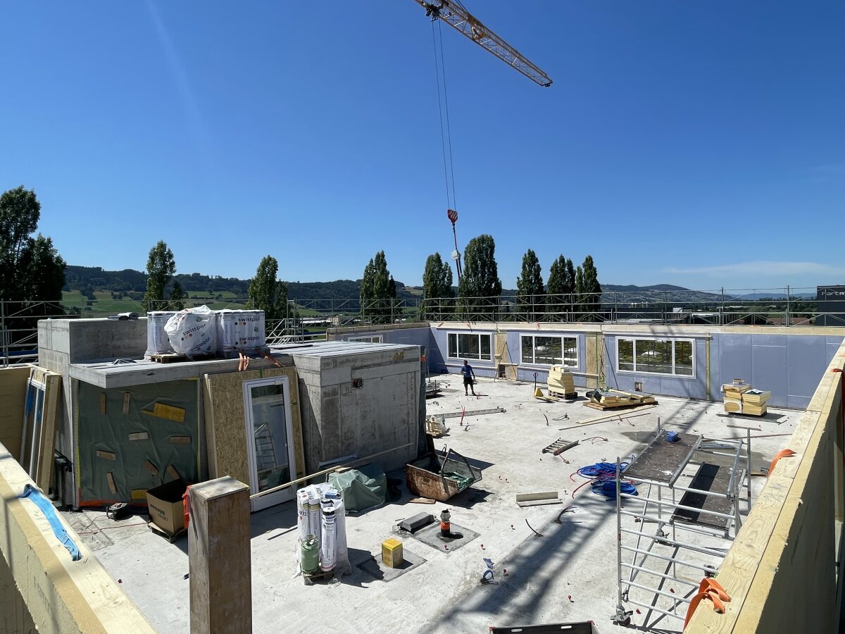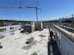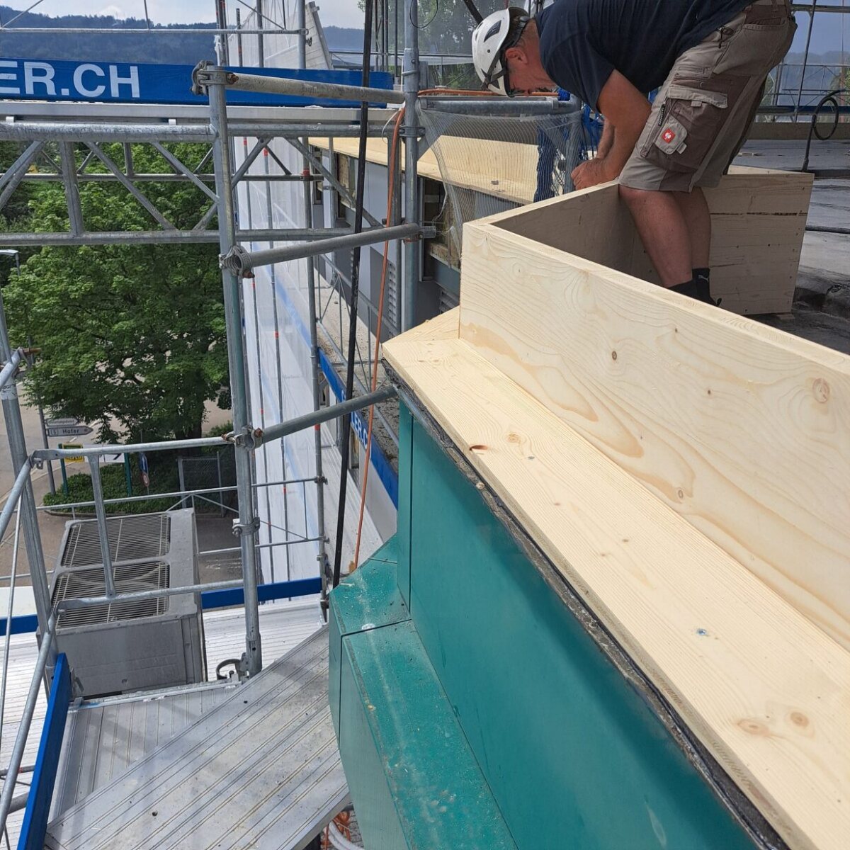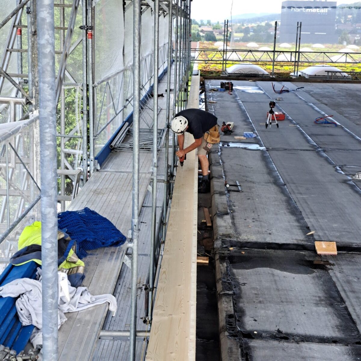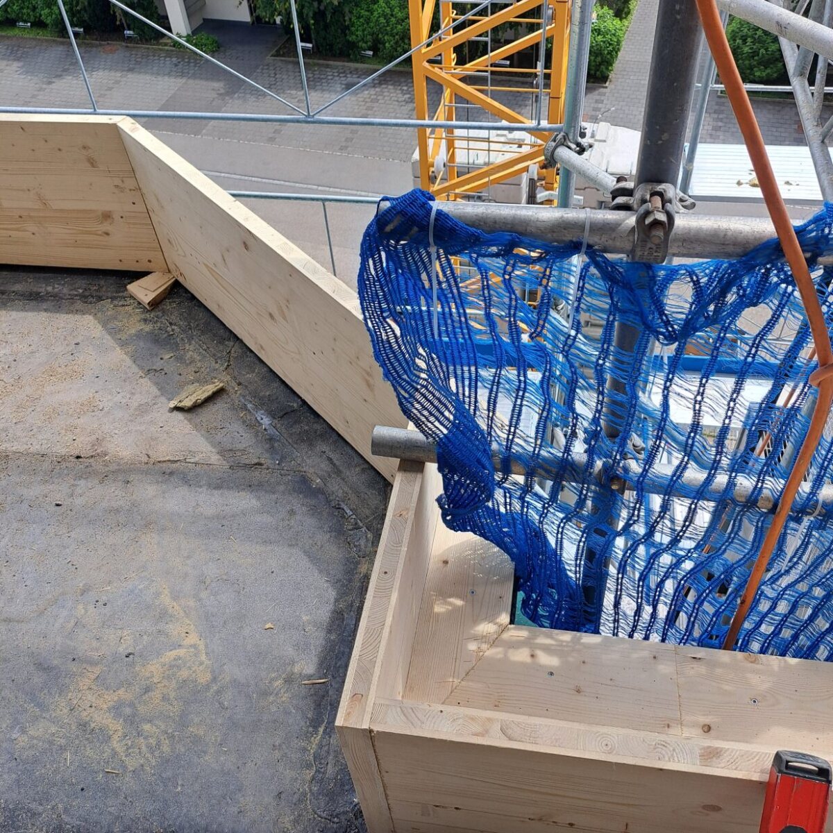 Wir arbeiten derzeit an der Errichtung eines Dachrandes. Der Beginn der Aufrichtarbeiten ist für nächste Woche geplant.