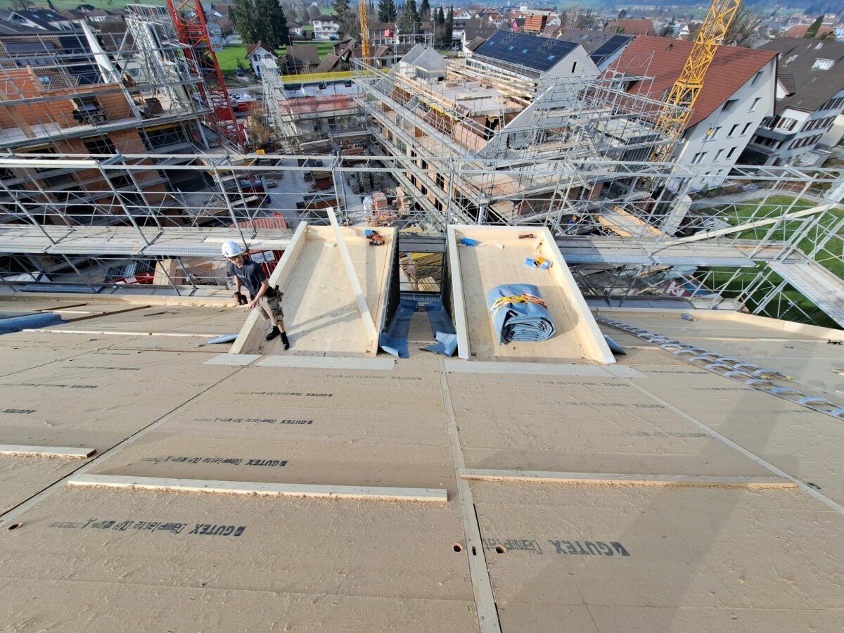 Erni Gruppe · Aktuelle Projekte & News · Drei Mehrfamilienhäuser, Boswil Drei Mehrfamilienhäuser, Boswil 10.03.2026In Boswil realisieren wir drei Mehrfamilienhäuser. Das Dach wurde aufgerichtet und die Lukarnen sind montiert. Die Fotos zeigen den aktuellen Baufortschritt auf dem Dach und im Dachgeschoss. Betriebsgebäude, Hitzkirch