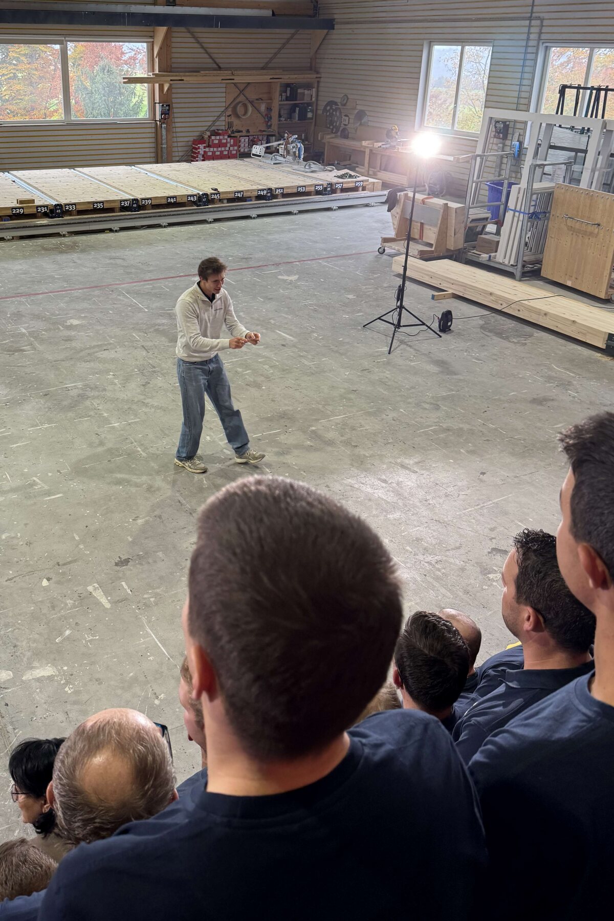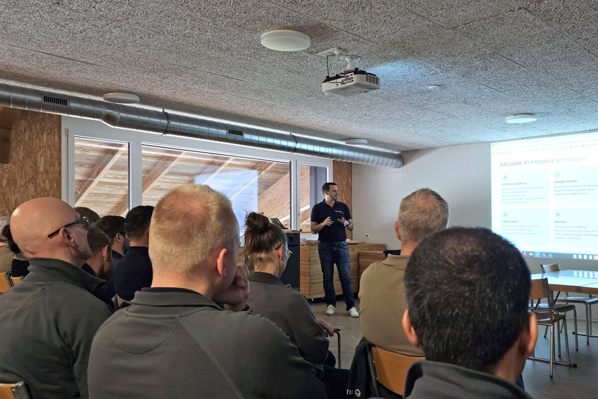 Für unsere Office-Mitarbeitenden fand ein Inputreferat zum Thema KI statt, anschliessend für die gesamte Belegschaft eines zu den Werten der Erni Gruppe.
