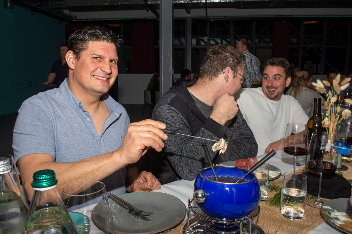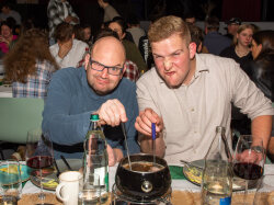 Kulinarisch wurden wir mit Salat und Fondue Chinoise verwöhnt. Ein feines Dessert und Kaffee sorgten für einen gelungenen Abschluss, bevor die Bar anschliessend eröffnet wurde.
