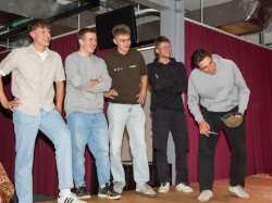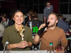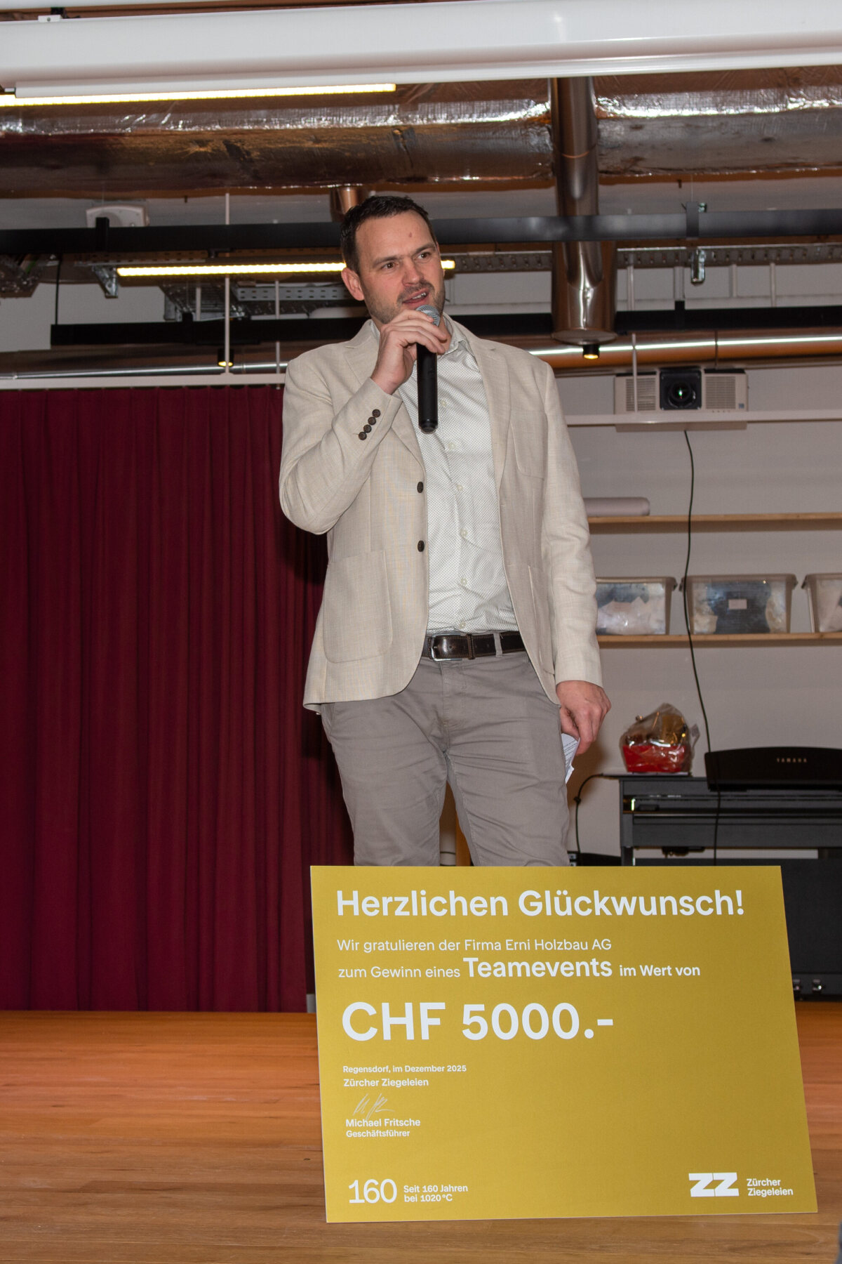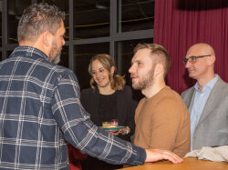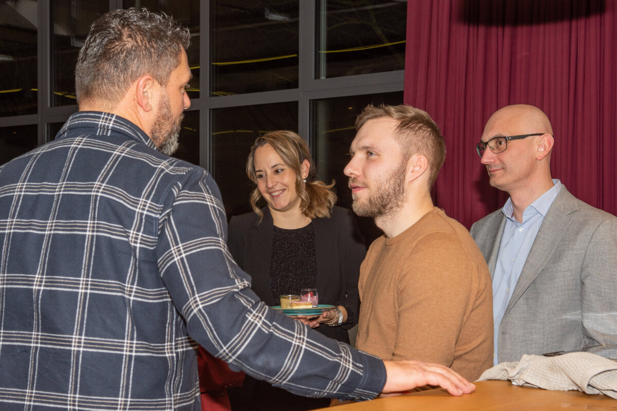 Ein zentraler Bestandteil des Abends waren die Ehrungen. Andreas richtete sich mit motivierenden Worten an die Mitarbeitenden und betonte den optimistischen Blick in die Zukunft. Er bedankte sich herzlich für den grossen Einsatz im vergangenen Jahr. Besonders gewürdigt wurden 51 Mitarbeitende, die das ganze Jahr über nie krank waren und mindestens 1’000 Arbeitsstunden für die Erni Gruppe geleistet haben – sie erhielten als Dankeschön einen Geschenkkorb. Zudem wurden zahlreiche langjährige Dienstjubiläen sowie Weiterbildungen gefeiert. Petra Zeder gestaltete diesen Programmpunkt auf unterhaltsame Weise mit einem interaktiven Kahoot-Quiz rund um die Erni Gruppe und ihre Mitarbeitenden.