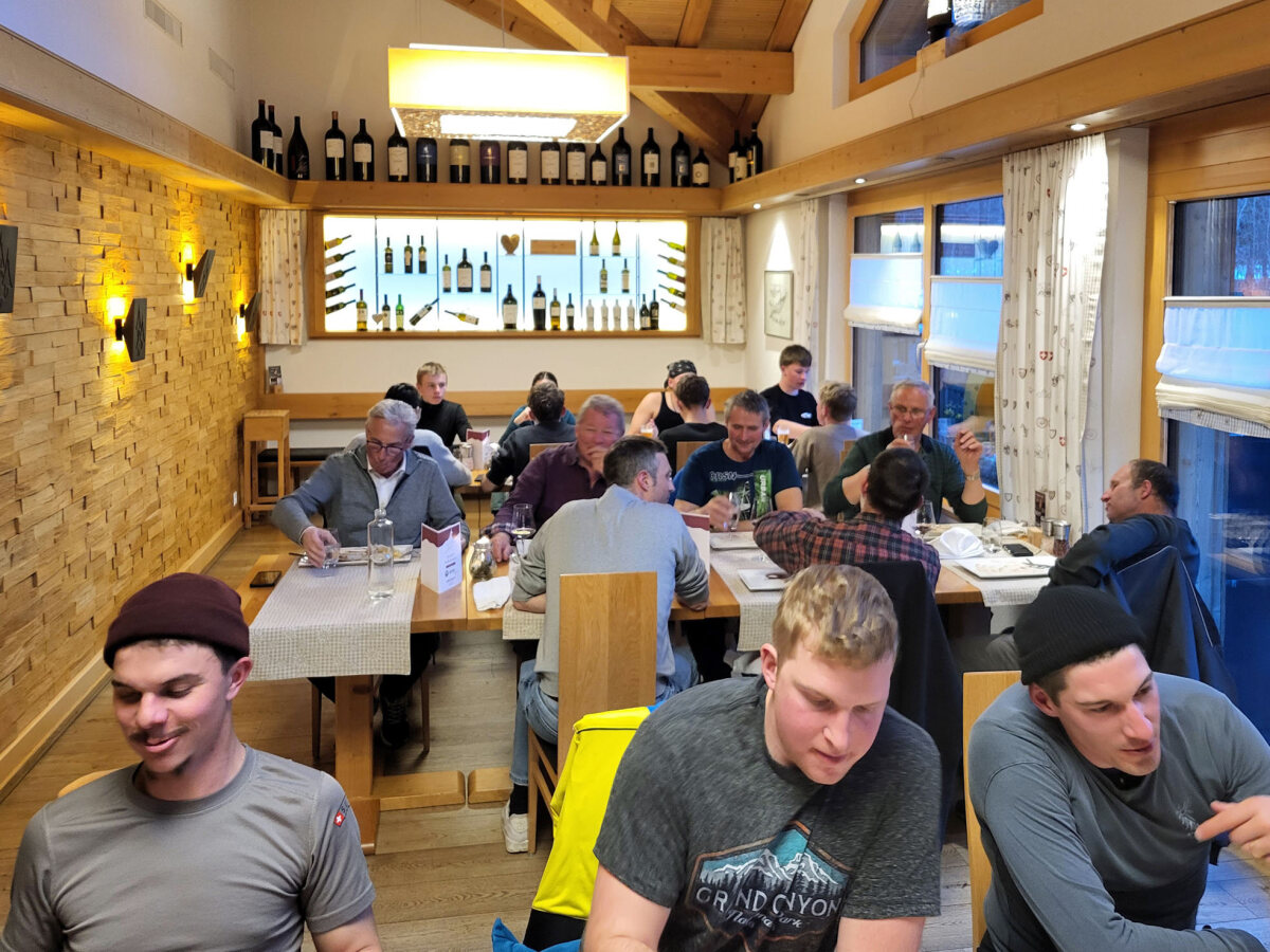 Am frühen Abend versammelten wir uns wieder und machten uns gemeinsam auf den Weg ins Alpenresort Eienwäldli. Dort wartete ein wohlverdientes Abendessen auf uns – die perfekte Gelegenheit, den Tag Revue passieren zu lassen und gemeinsam zu lachen.