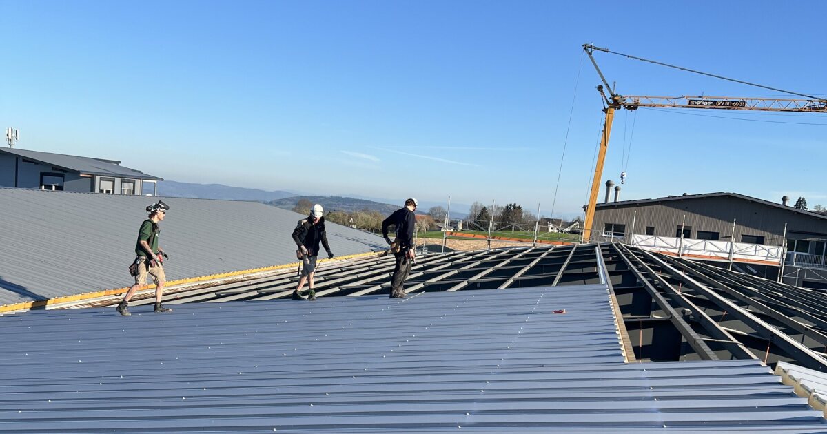 Die Gebäudehülle nimmt bereits Form an: Die Wände wurden mit Sandwichpaneelen erstellt. Das alte Dach aus Asbest-Eternit wurde fachgerecht und gemäss den geltenden Vorschriften zurückgebaut und entsorgt. Aktuell wird ein neues Dach ebenfalls in Sandwichbauweise montiert.