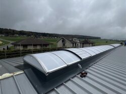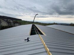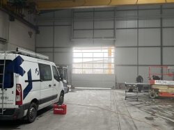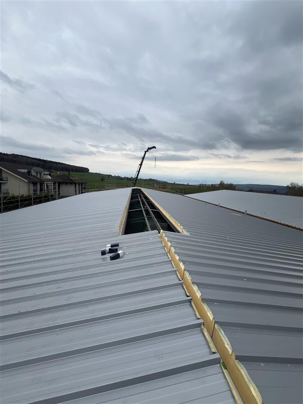 Wir kommen mit der Halle gut voran. Die First-Lichtmontage sowie die Tormontage sind nun auch erfolgt.