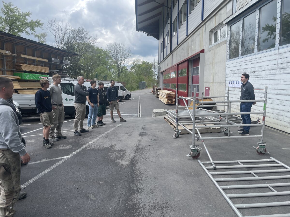Am Freitag fand erneut eine Sicherheitsschulung statt, bei der unsere Mitarbeitenden im Umgang mit persönlicher Schutzausrüstung gegen Absturz, Rollgerüsten und dem sicheren Beladen von Pritschen geschult wurden. Es ist entscheidend, dass Mitarbeitende die richtige Ausrüstung tragen und wissen, wie sie diese korrekt anlegen. Die Schulung beinhaltete auch den sicheren Auf- und Abbau von Rollgerüsten sowie das richtige Verhalten darauf, um Unfälle zu vermeiden. Beim Beladen von Pritschen wurde vermittelt, wie schwere Lasten richtig verteilt und gesichert werden, um das Unfallrisiko zu minimieren. Durch regelmässige Schulungen können unsere Mitarbeitende ihr Wissen auffrischen und sicherheitsbewusst handeln.