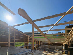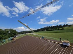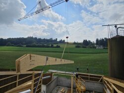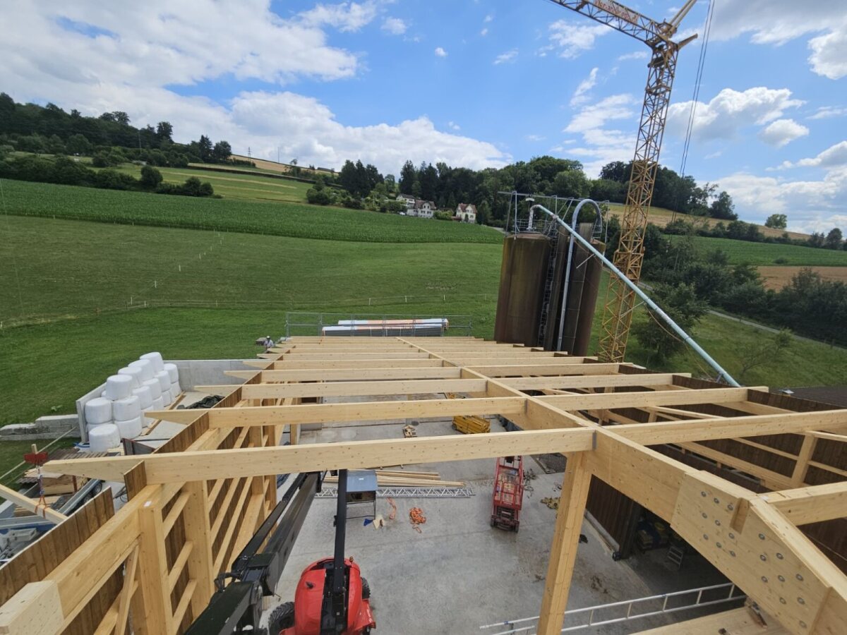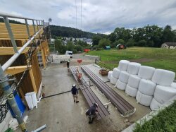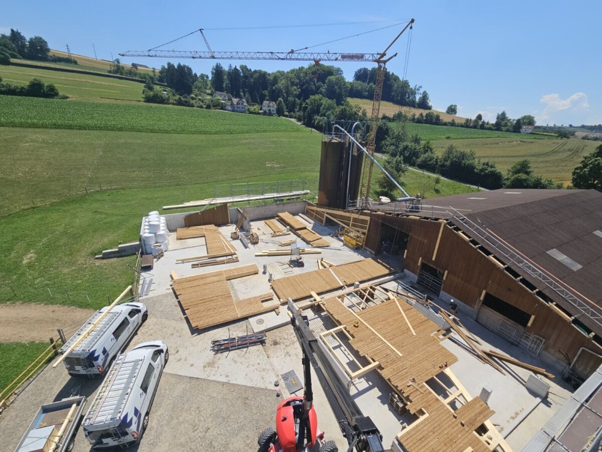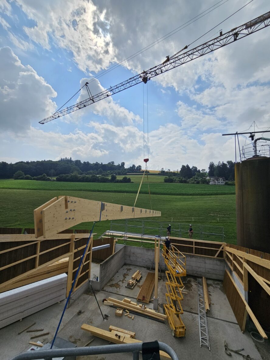 In Rudolfstetten geht’s voran! Die Dachbinder sind geliefert, und wir sind derzeit dabei, die Wände vor Ort zusammenzustellen – bald richten wir sie auf. Schritt für Schritt entsteht hier ein moderner Mutterkuhstall.