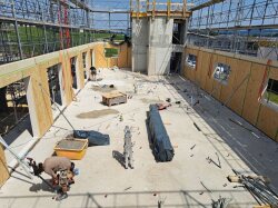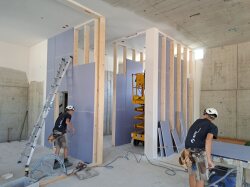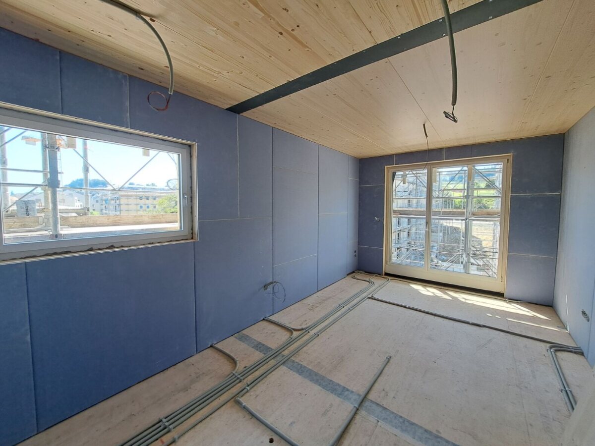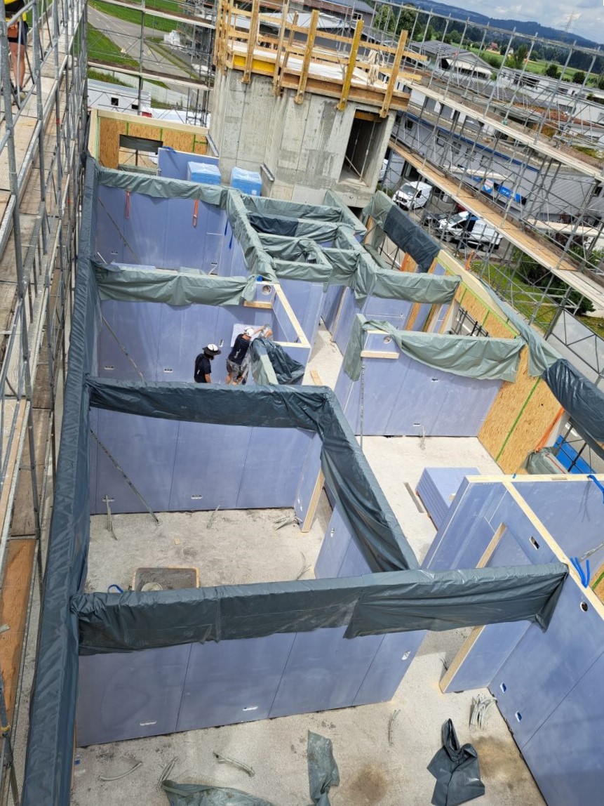 Die Arbeiten auf der Baustelle in Mühlau kommen gut voran. In den vergangenen Tagen konnten wir bedeutende Fortschritte erzielen: Die Ständerwände wurden gestellt und bereits beplankt. Zudem erfolgte die fachgerechte Montage des Windpapiers. Auch der Installationsrost wurde eingebaut. Insgesamt liegen wir sehr gut im Zeitplan und sind mit dem bisherigen Verlauf der Arbeiten sehr zufrieden.