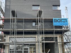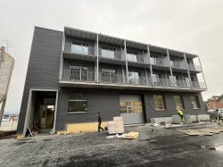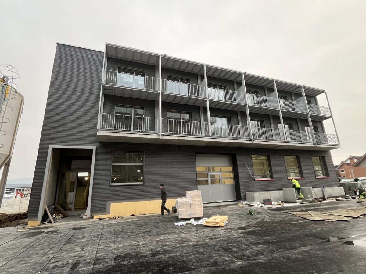 Wir kommen mit den Fassadenarbeiten gut voran, und die Fassade zeigt bereits ihre klare, moderne Wirkung.