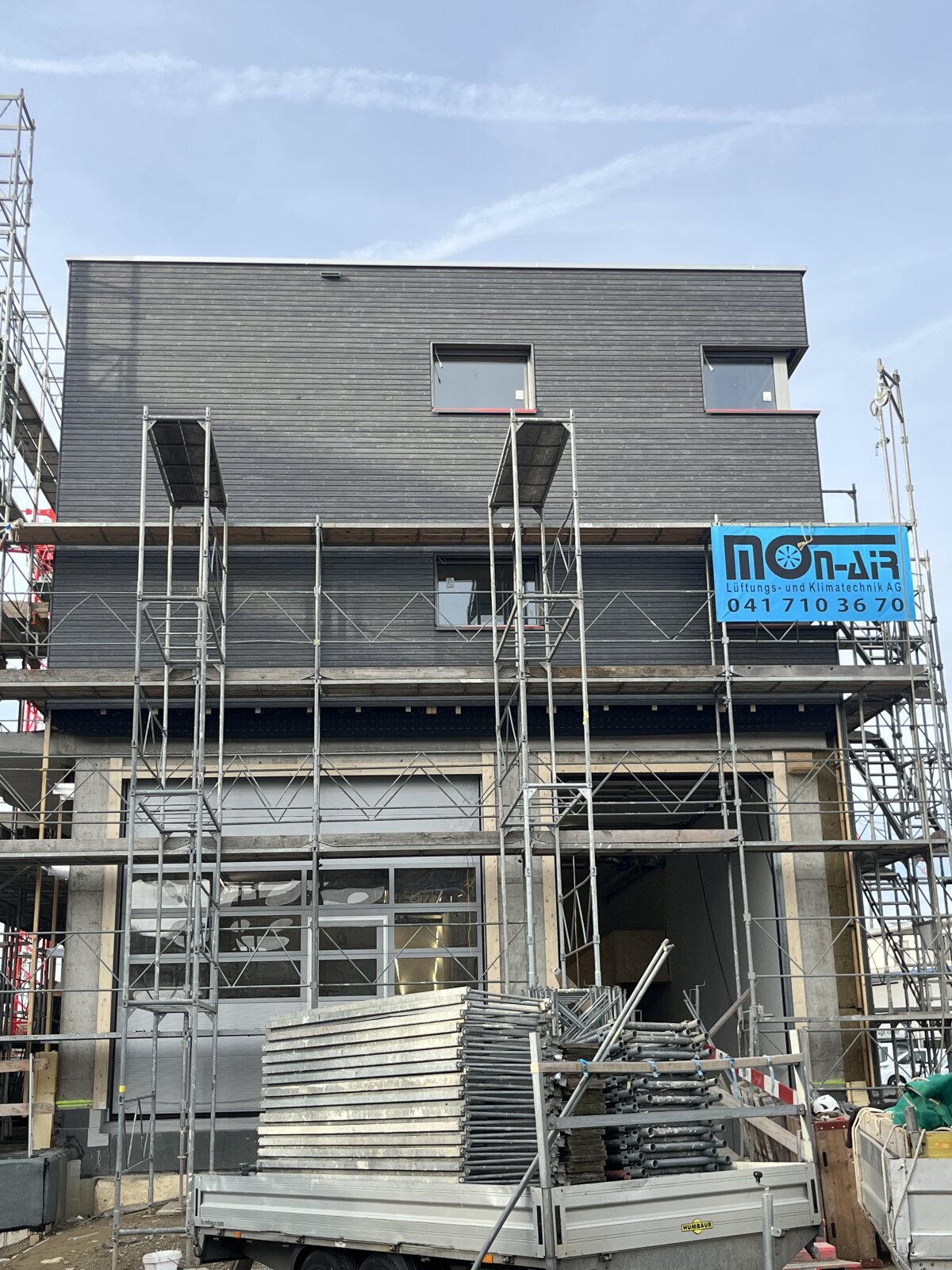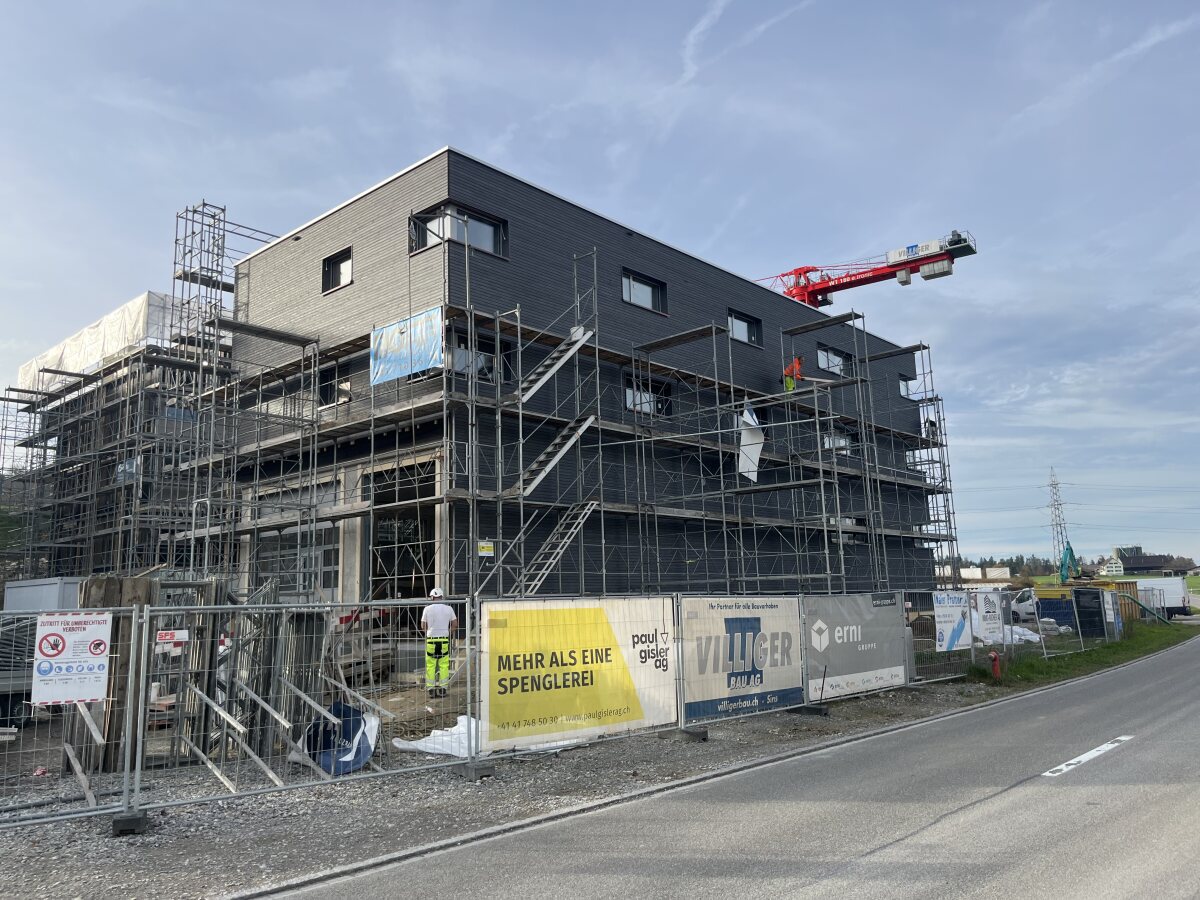 In Mühlau bei der Überbauung Roggächer sind wir gut vorangekommen. Das Gerüst wurde abgebaut.