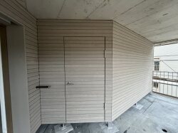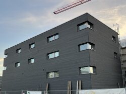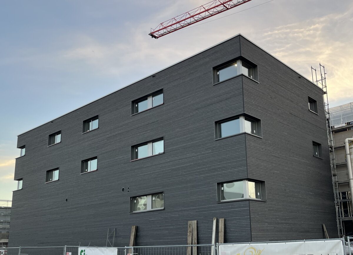 Auf der Baustelle in Mühlau wurde die Montage des Fassadenrosts abgeschlossen.