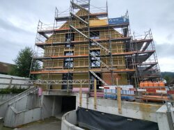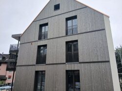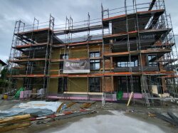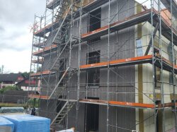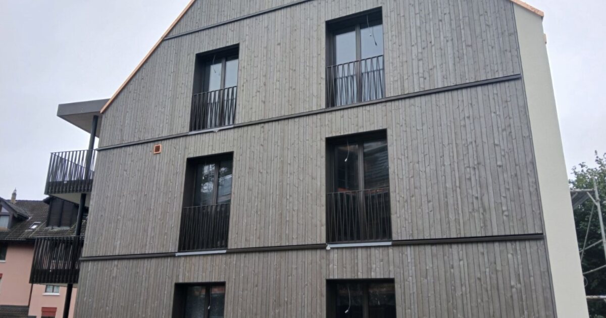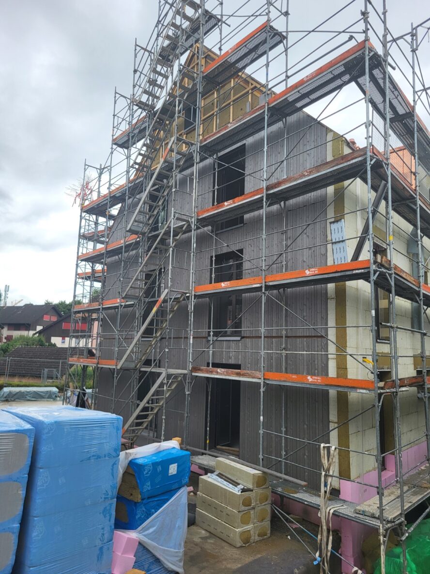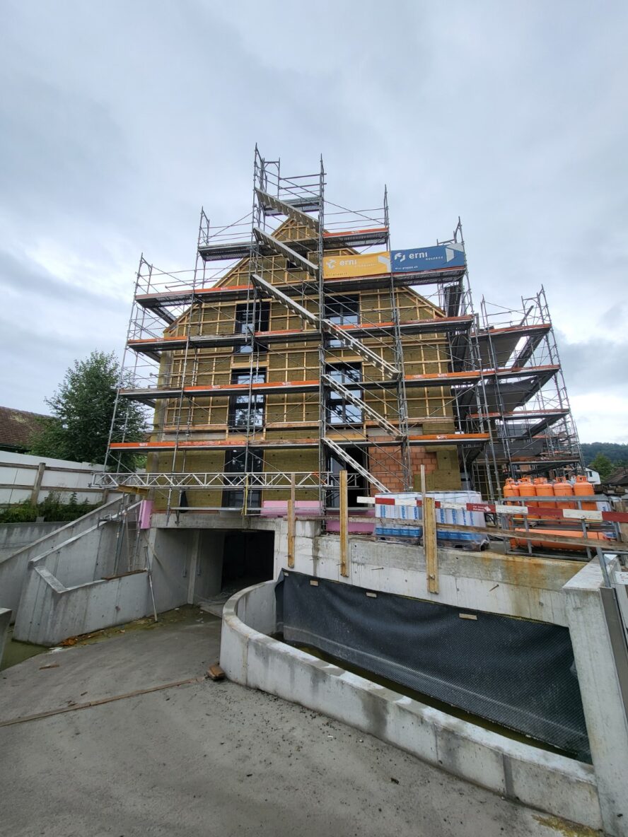 Wir sind dabei, die Fassade bei den Mehrfamilienhäusern in Mettmenstetten zu montieren.