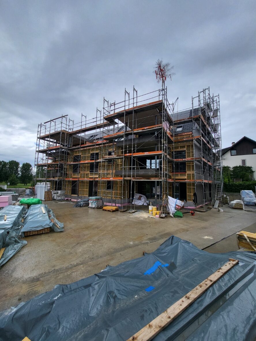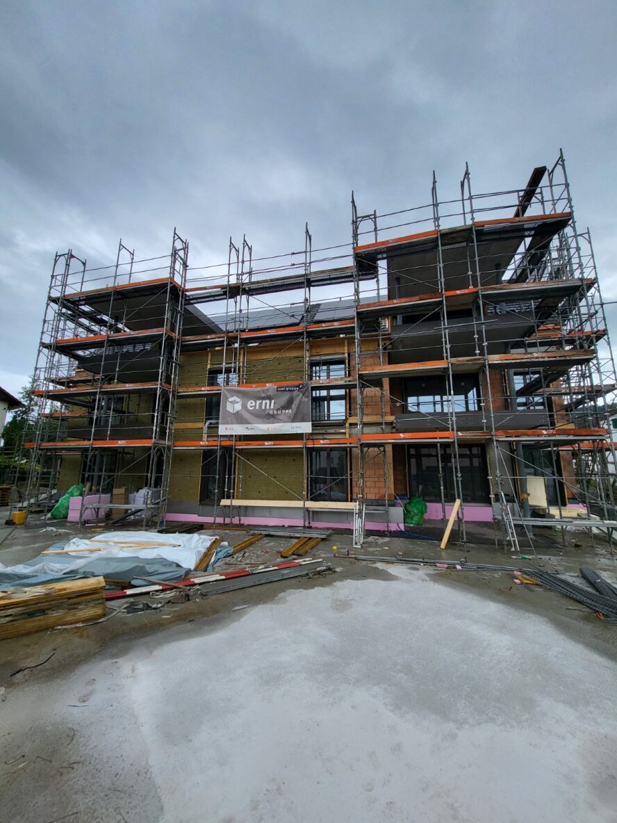In Mettmenstetten dürfen wir die Ausführung von zwei Mehrfamilienhäusern übernehmen – mit Einsatz unserer Sparten Holzbau und Spenglerei. Die Arbeiten kommen gut voran: Der Holzbau hat bereits das Dach aufgerichtet.