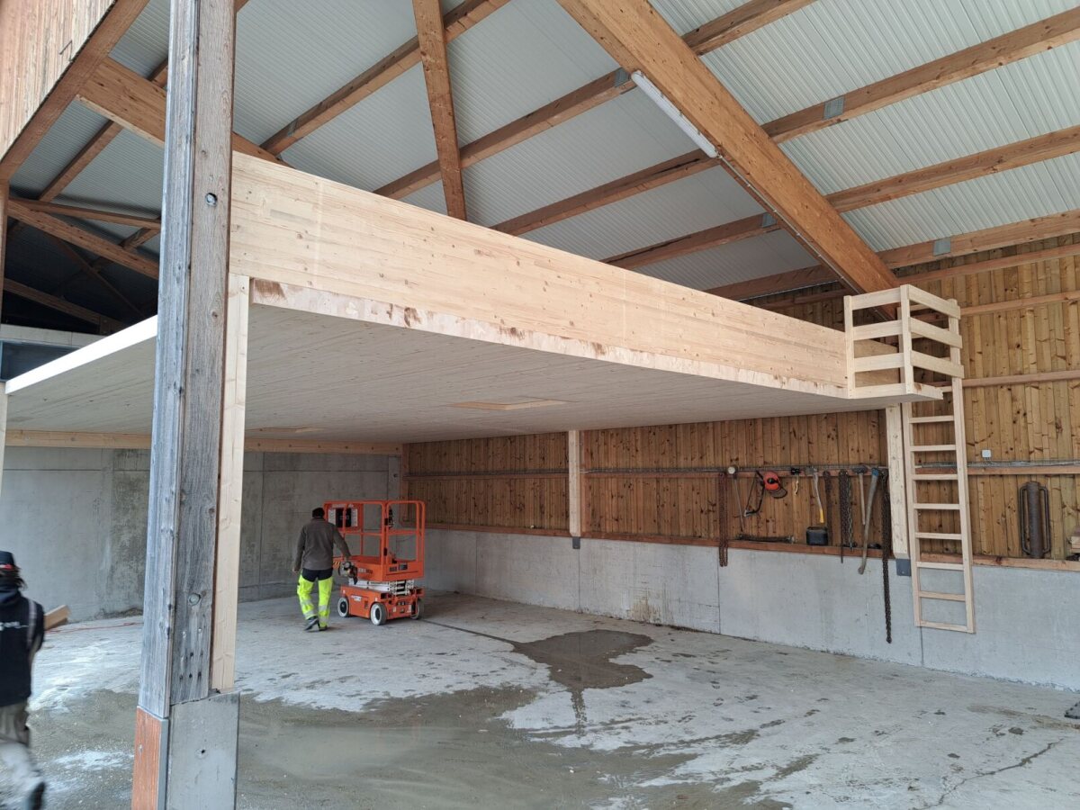In Hausen am Albis dürfen wir bei einer Remise einen Zwischenboden realisieren. Der Zwischenboden wird dazu dienen, zusätzlichen Stauraum für die Lagerung von Heu zu schaffen, was die Effizienz der landwirtschaftlichen Arbeiten erheblich steigert. Geplant ist eine robuste Holzkonstruktion, die nicht nur den Anforderungen der Traglast gerecht wird, sondern auch optisch mit der bestehenden Remise harmoniert.
