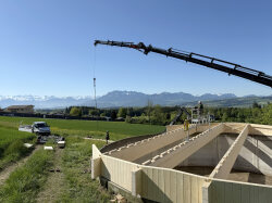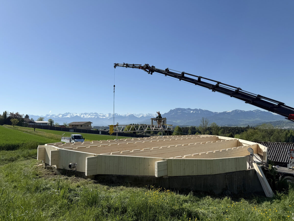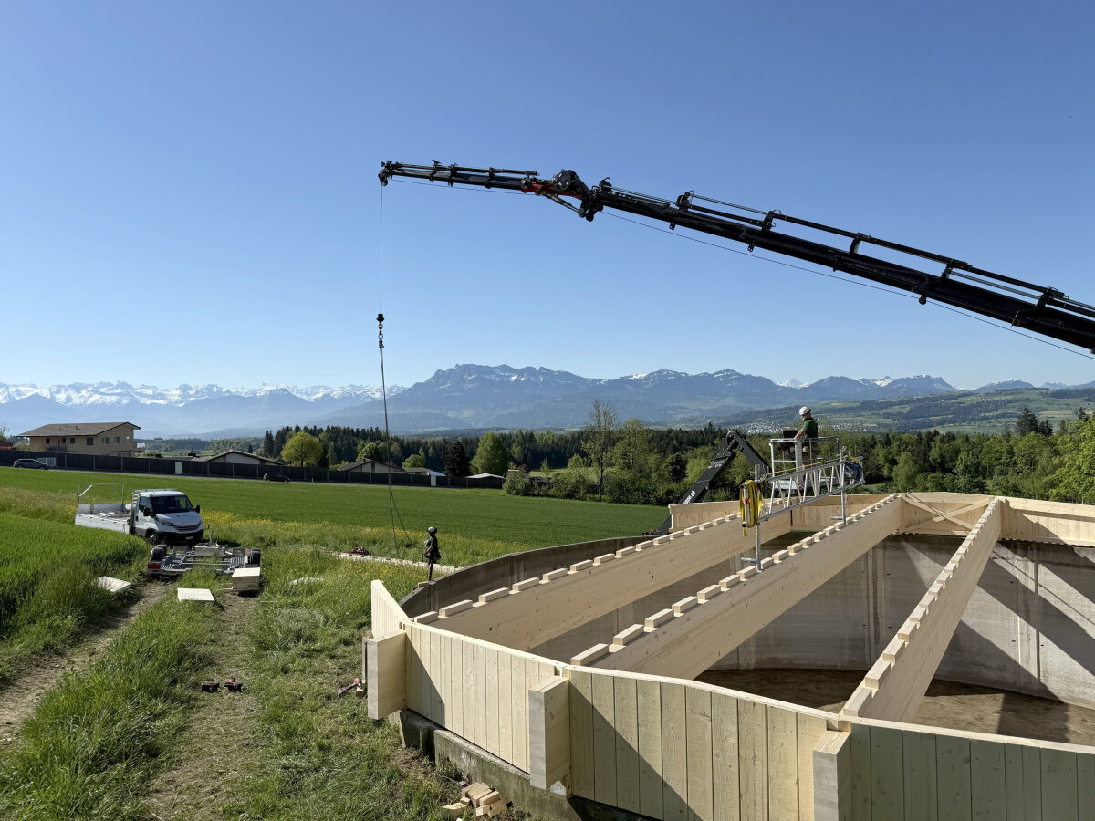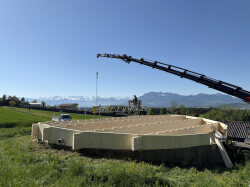 Die allererste Holz-Siloabdeckung haben wir im Juni 2021 in der Gemeinde Ebikon realisiert. Alle Auflagen der Behörden: Landwirtschaft und Wald (lawa), Dienststelle Umwelt und Energie (uwe) sowie Raum und Wirtschaft (rawi) sind eingehalten.