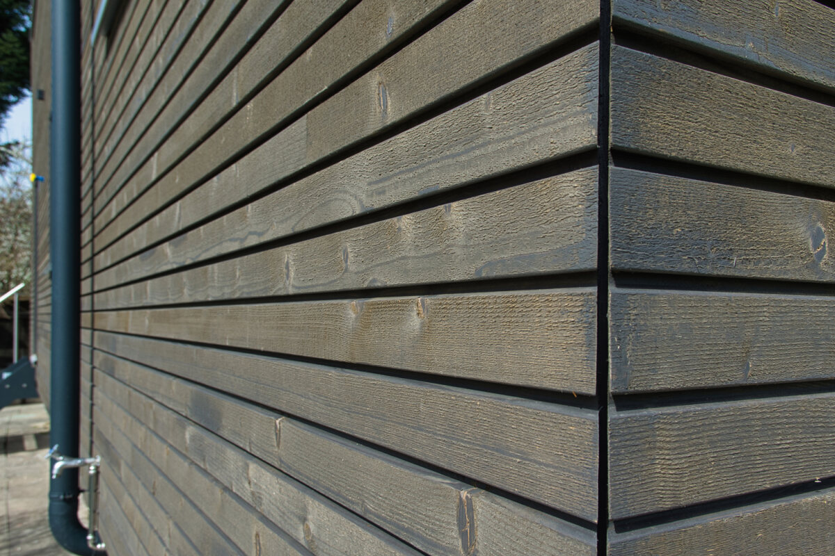 - Liegende Fichtenschalung mit Vorvergrauungslasur behandelt