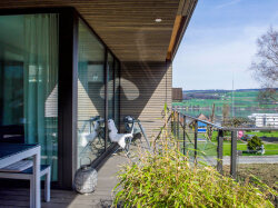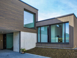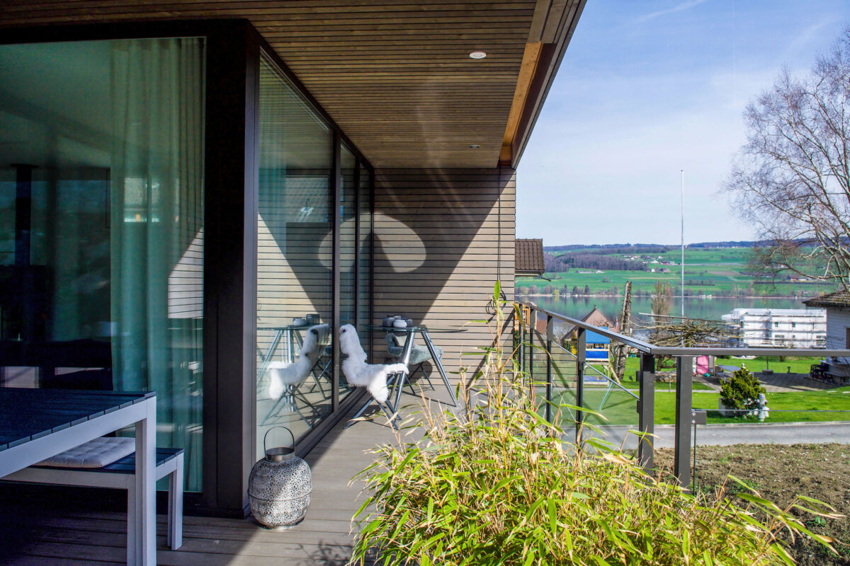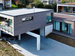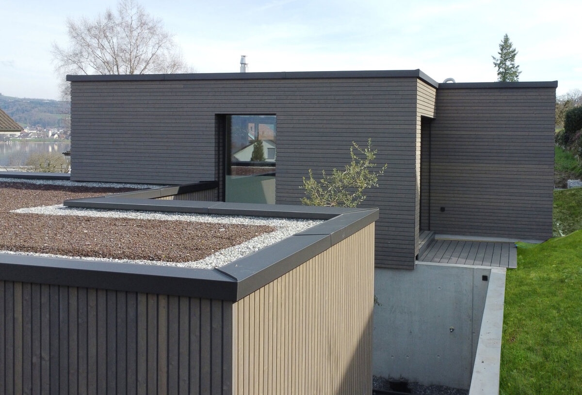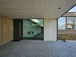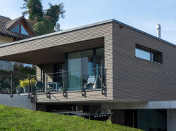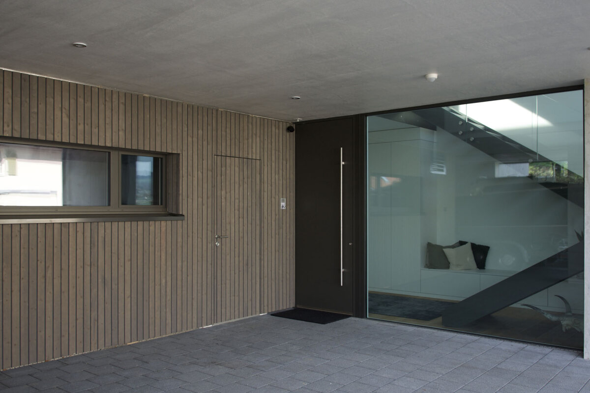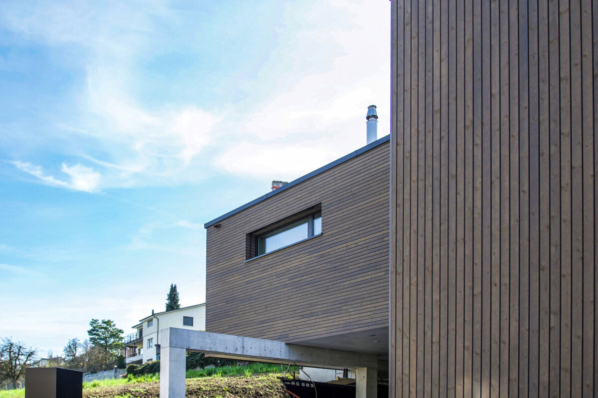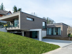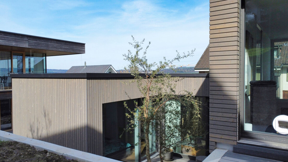 Auffällig sind die grossen Verglasungen, die das ganze Gebäude mit Licht durchfluten. Die aussergewöhnliche Architektur verleiht dem Einfamilienhaus seinen eigenen Charakter.