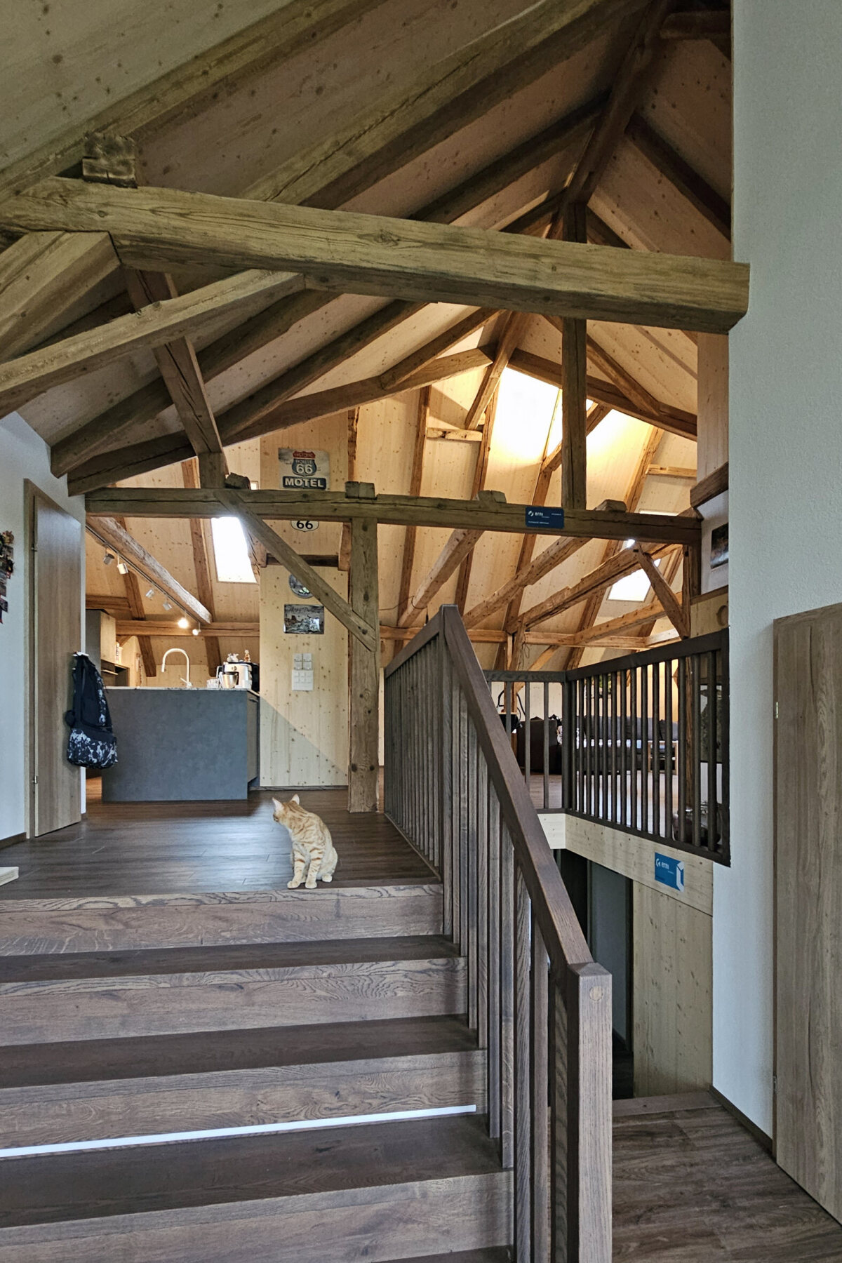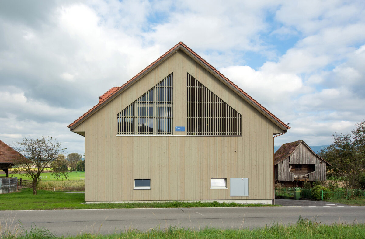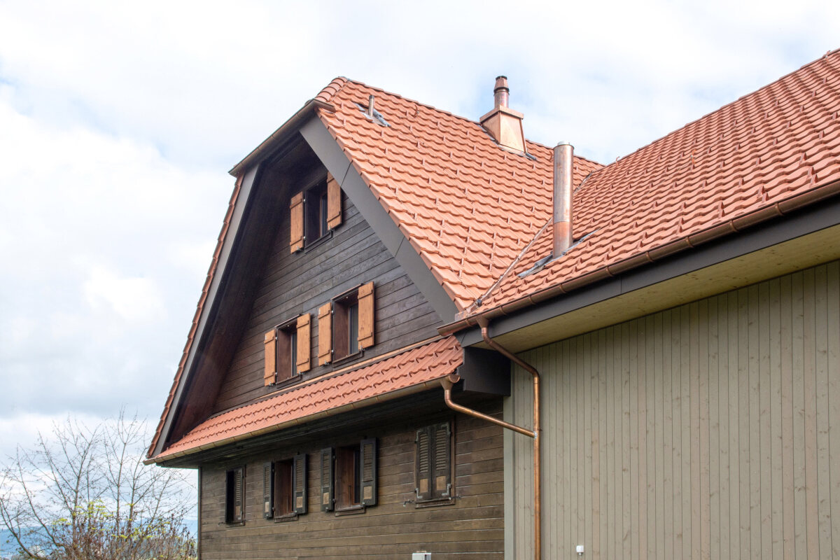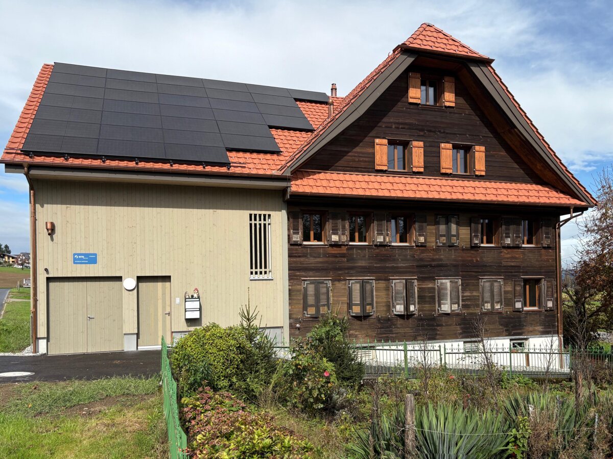 Der Umbau dieses Wohnhauses verbindet bestehenden Charakter mit zeitgemässem Holzbau. Besonderes Augenmerk lag auf der sorgfältigen Verknüpfung von Alt- und Neubau. Historische Balken wurden aufgearbeitet, integriert und bewusst sichtbar belassen, während der Neubau mit vorgefertigten Holzelementen realisiert wurde. Der Neubau zeigt sich mit schlichter, vertikaler Holzfassade und klarer Linienführung. Grosse Öffnungen sind hinter der Holzkaschierung verborgen und sorgen für helle Innenräume bei ruhiger, geschlossener Aussenwirkung. Der Altbau bewahrt mit dunkler Holzfassade und kleineren Fenstern seinen ursprünglichen Ausdruck. Ein besonderes Element bildet der ausgebaute Dachstock: Ein grosszügiger, lichtdurchfluteter Wohnraum, in dem sich historisches und neues Holz zu einer warmen Atmosphäre verbinden.