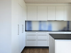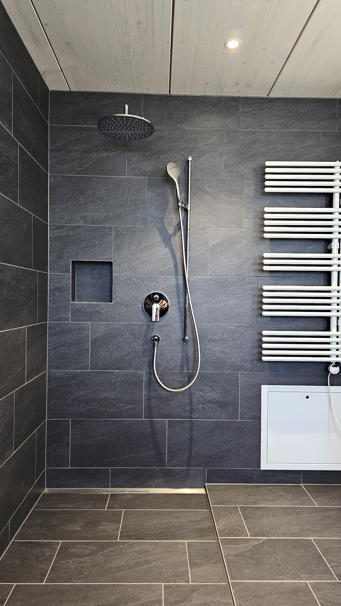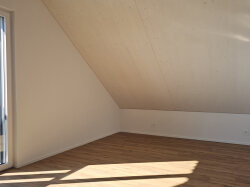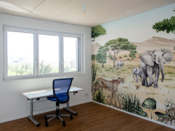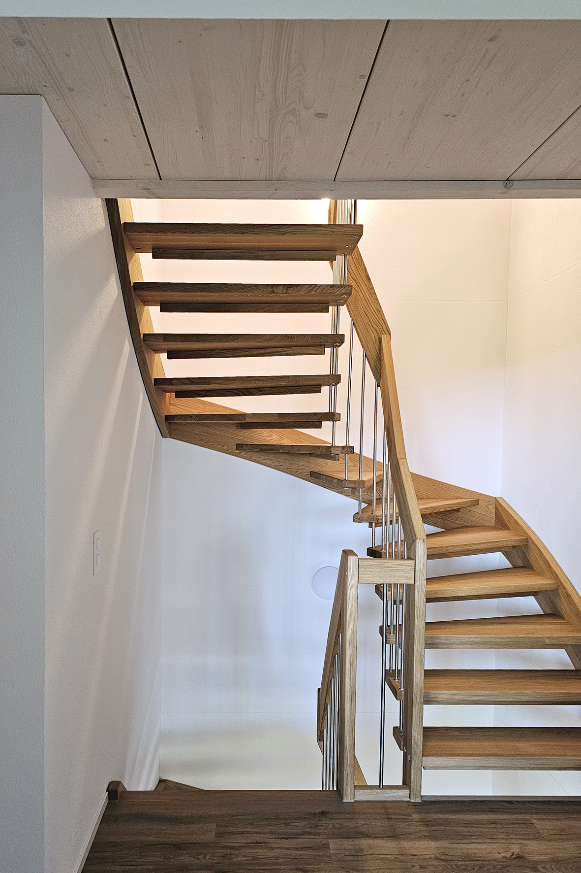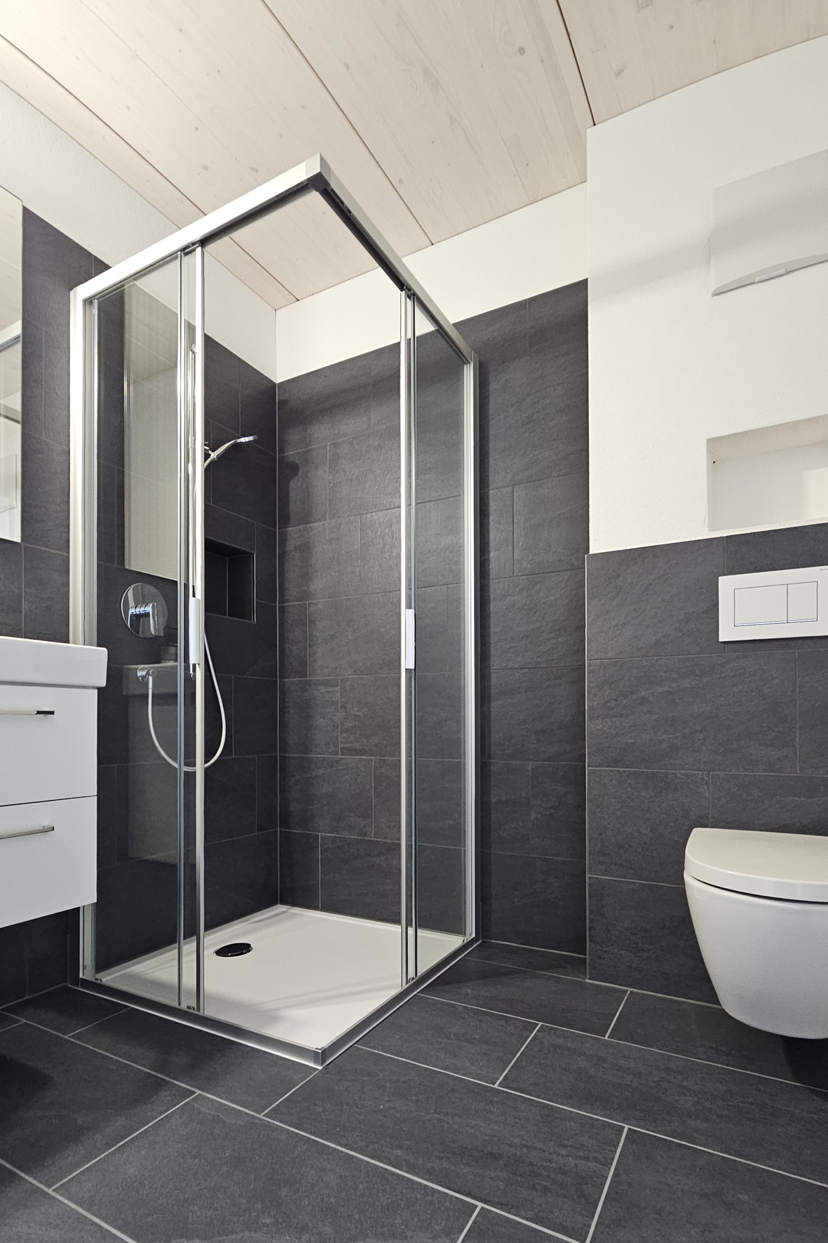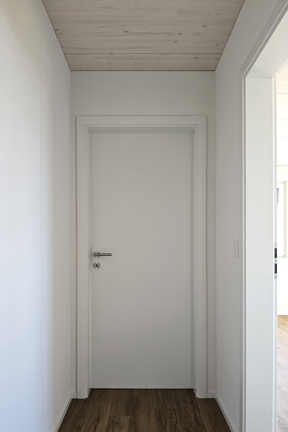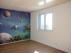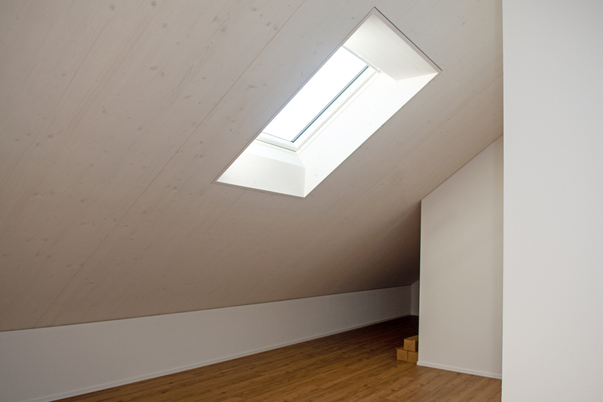 Das Kellergeschoss ist in Massivbauweise errichtet, die weiteren Stockwerke sind aus Holzelementen gefertigt, welche an die bestehende Scheune angepasst wurden. Die integrierte Loggia mit Blick über das ganze Seetal lädt im Erdgeschoss zum Verweilen ein. Die grosszügigen Zimmer in den oberen Geschossen sind sehr hell gestaltet und bieten ausreichend Platz, um sich zurückzuziehen. Ergänzt ist das ganze Gebäude mit einer grossen und leistungsfähigen PV-Anlage.